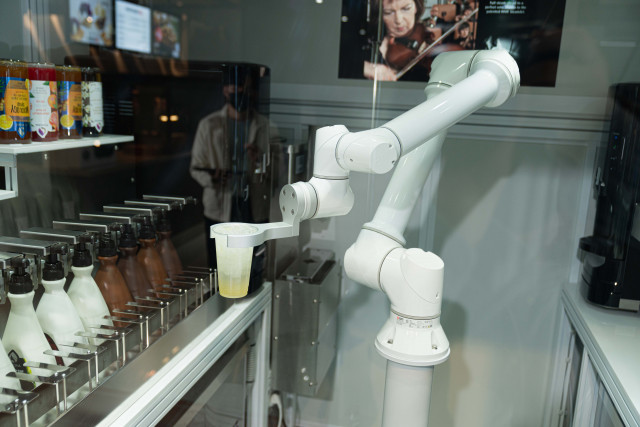 이번에 전시하는 로봇카페는 레인보우로보틱스에서 개발한 협동로봇 RB-N 시리즈가 탑재된 플랫폼으로 세계 최초 미국위생협회(NSF) 인증 받은 로봇이 적용돼 위생 안전성을 확보했다. 또한 로봇팔이 정교한 작업을 반복적으로 수행해 음료의 품질을 일정하게 유지하고, 평균 50초 이내 음료가 제공돼 고객이 빠르고 간편하게 음료를 즐길 수 있다. 이를 통해 로봇 기술로 구현한 고품질 에스프레소 커피를 제공한다.